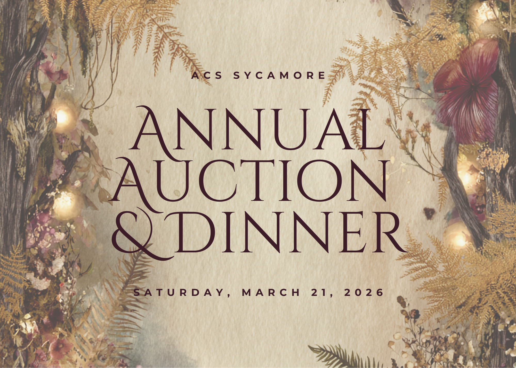 Our Annual Auction and Dinner, “An Evening in the Garden” is right around the corner! Enjoy an elegant evening featuring dinner by the Country Store & Catering, a live string quartet, a signature mocktail, and silent, live, and dessert auctions - all in support of ACS Sycamore students.